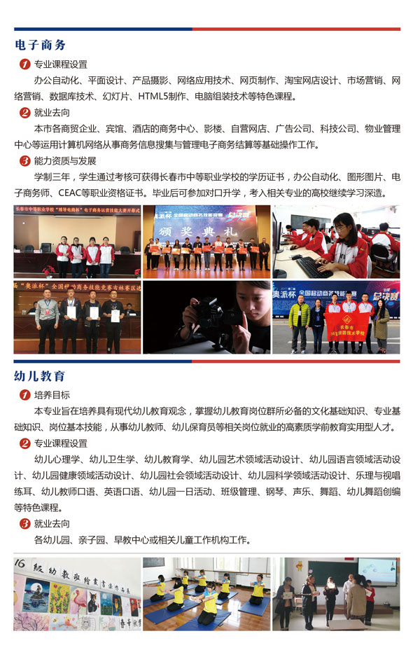 | 电子商务 计算机应用与维修 计算机广告制作 计算机动画制作 | 烹饪(中、西式烹调) 烹饪(中、西式面点) | 旅游服务与管理 饭店服务与管理 | 美容美发与造型 幼儿教育 市场营销 |